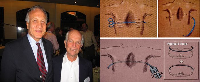 - Sağdaki kesiden göğüs boşluğuna sokulan tünel açıcı çukurluğun en derin noktasında iman tahtası ile (sternum) kalp zarı arasından açılan tünelden sol göğüs boşluğuna uzatılır ve solda yapılan kesiden dışarı çıkartılır.